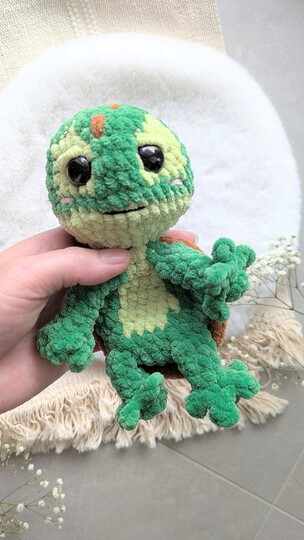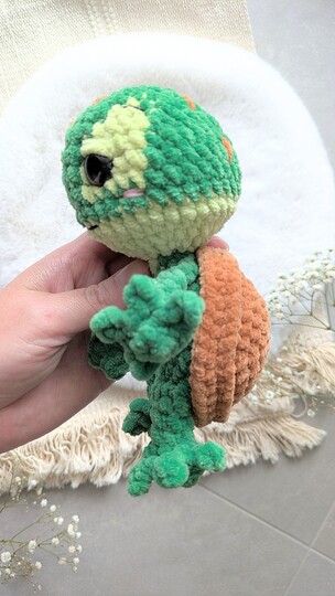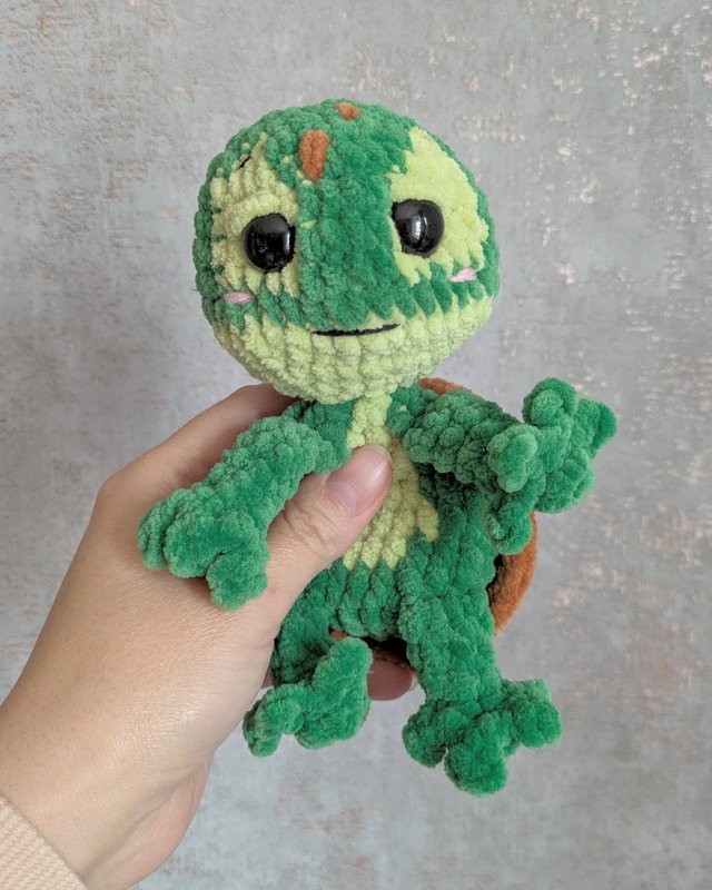 Ein besonderes Highlight: Der Panzer von Lui wird mit nur wenigen Stichen angenäht, was das Projekt besonders einfach und schnell macht. Der Rest des Körpers wird komplett eingehäkelt, sodass du dich ganz auf die kreativen Details konzentrieren kannst.