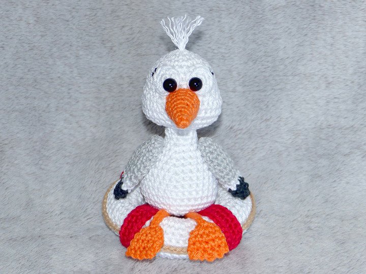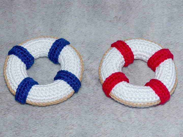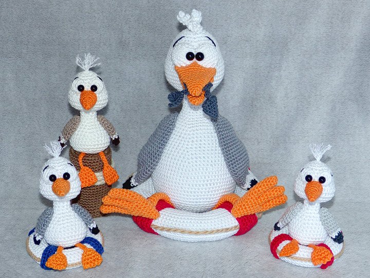 Ich beschreibe euch in der Anleitung wie die Möwen, die Rettungsringe und der Holzpoller gehäkelt werden.