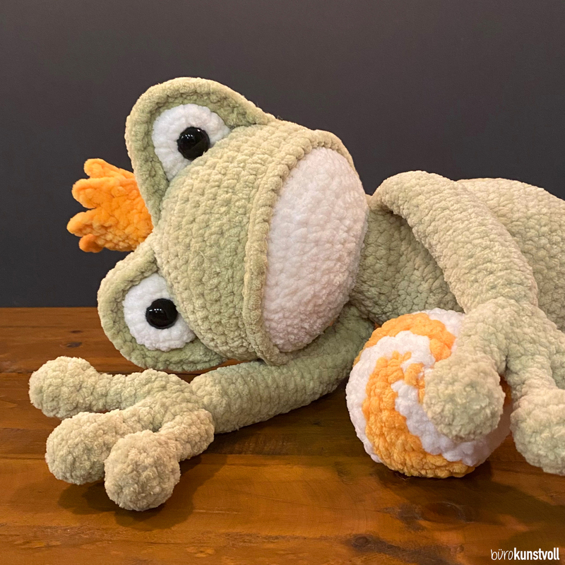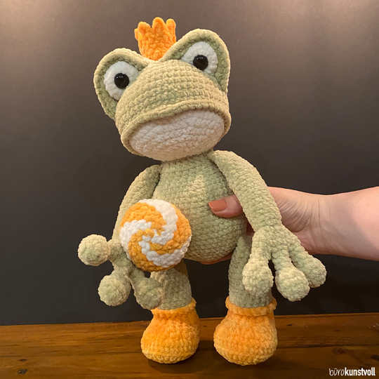 in dieser Anleitung zeige ich dir Schritt für Schritt, wie du den kuscheligen Goldfrosch Theo selbst herstellen kannst.