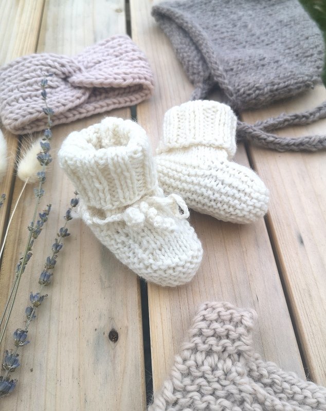 Diese süßen Baby-Booties sind ideal für die ersten Lebensmonate und gehören einfach zu jeder Baby-Erstausstattung. Sie lassen sich wahlweise mit oder ohne Bändchen stricken – beide Varianten sind in der Anleitung ausführlich erklärt.