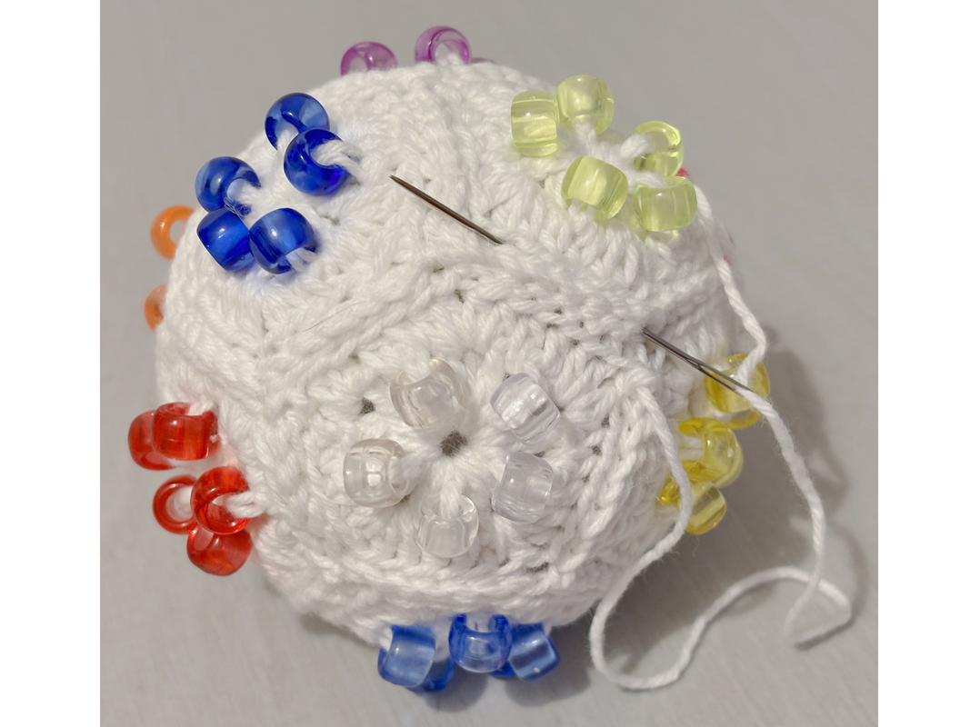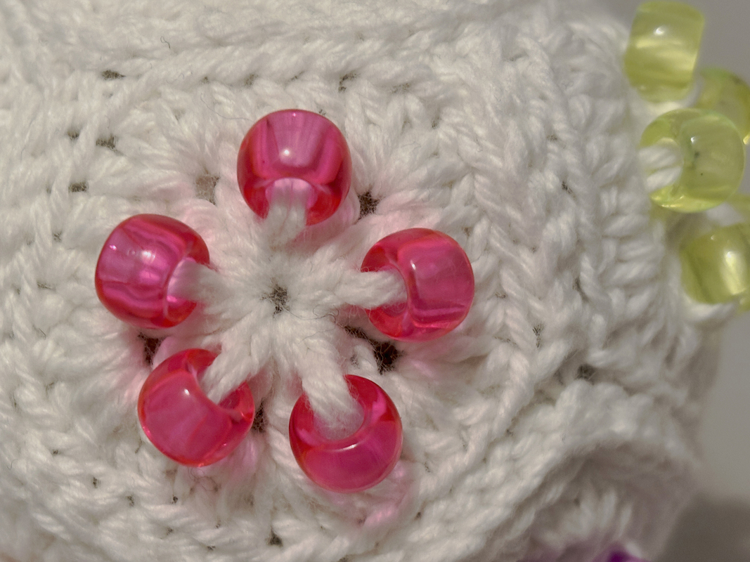 Verwende bunte Garne und bunte Perlen für mehr visuelle Reize.
