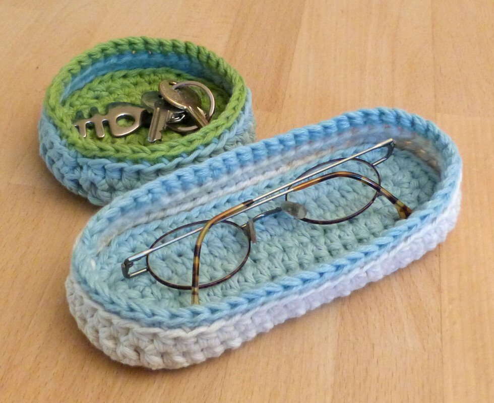 Praktisch und dekorativ: vielseitig einsetzbare Schälchen in 2 verschiedenen Formen z.B. als Ablage für Brillen, Stifte, Häkelnadeln, Schlüsselbund uvm... Schont sowohl die Brille als auch die Möbel vor ungewollten Kratzern... und alles, was einen gewohnten Platz hat, geht auch nicht so schnell verloren.