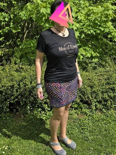 Anmerkung zur Größe: mit ungedehnter Breite meine ich, ich trage den Rock auf dem Foto in Gr.40/42 und mein Hüftumfang beträgt 110cm. Miss also deinen Hüftumfang, ziehe 10-15cm davon ab, teile das Ergebnis durch 2 und du hast deine ungedehnte Breite. Dann schau welche Größe am ehesten hinkommt und stricke die.