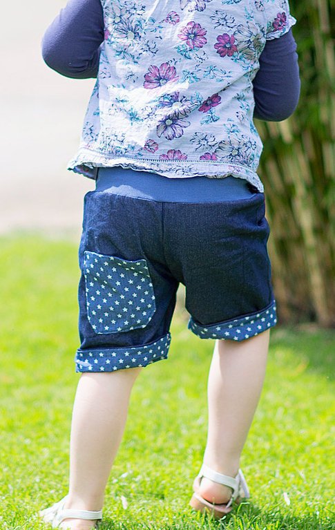 Das E-Book beinhaltet ein Schnittmuster für eine kurze Hose zum Wenden in den Größen 50-140.