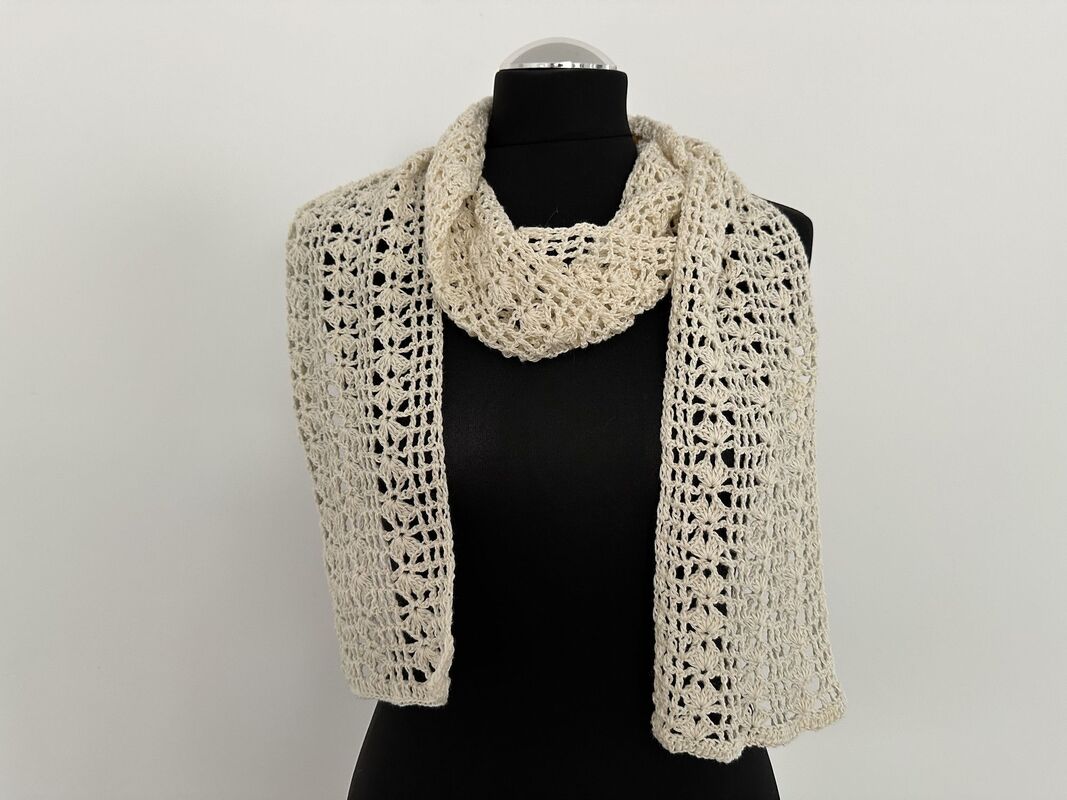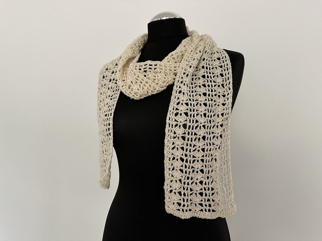 Zwei federleichte Muster, die sich Reihe für Reihe wiederholen, machen dieses Projekt auch für Häkelneulinge gut machbar. So entsteht ein stilvolles Accessoire, das mit Leichtigkeit und Eleganz überzeugt.