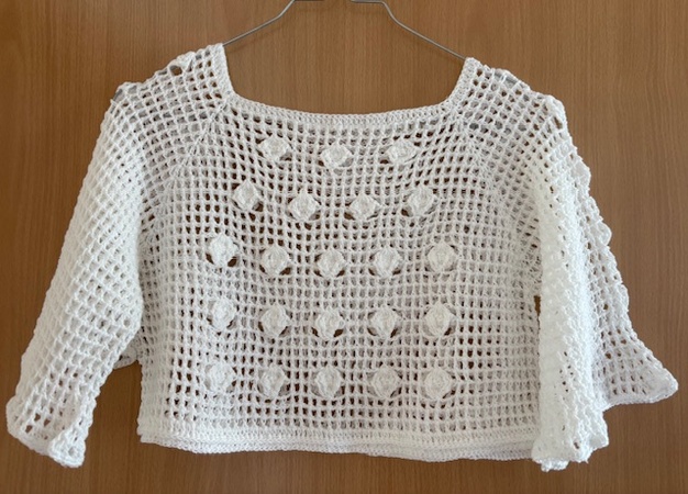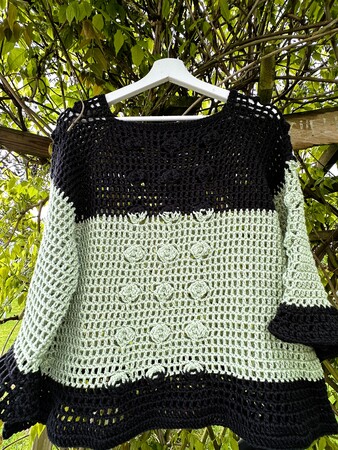 Es wird in der Raglan-von-oben-Technik (RVO) gehäkelt.