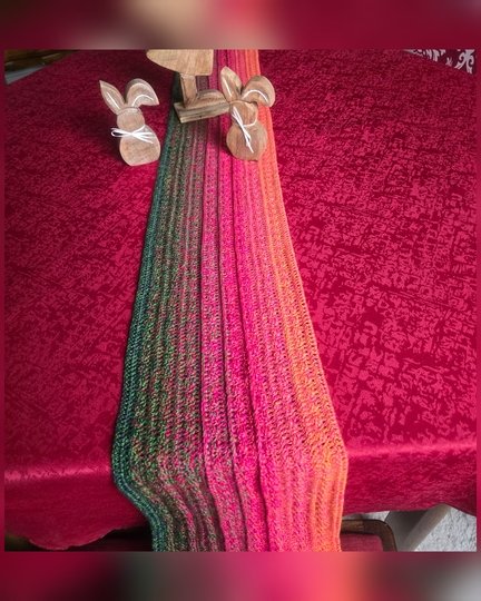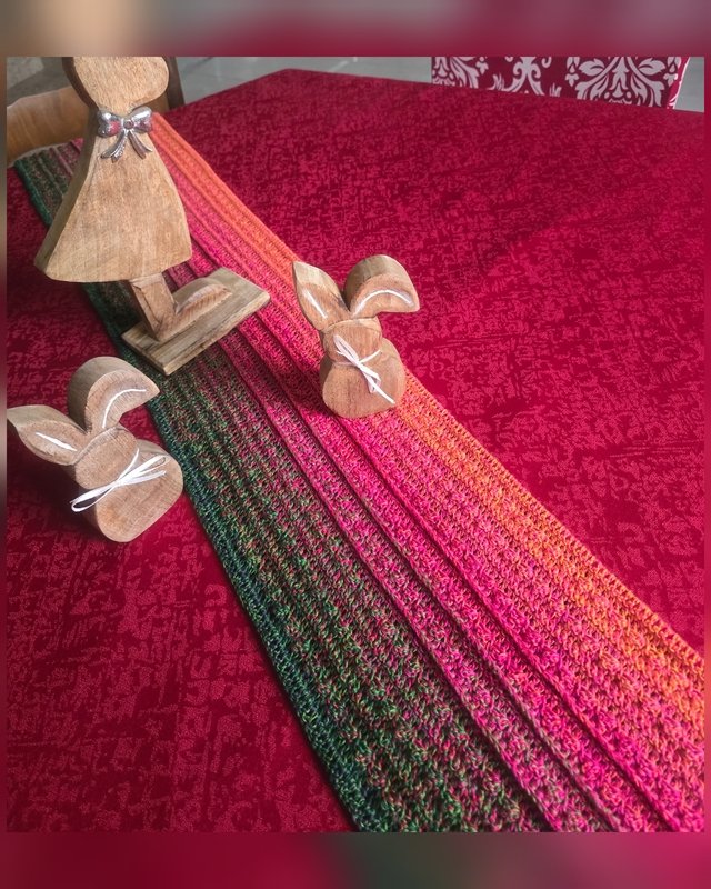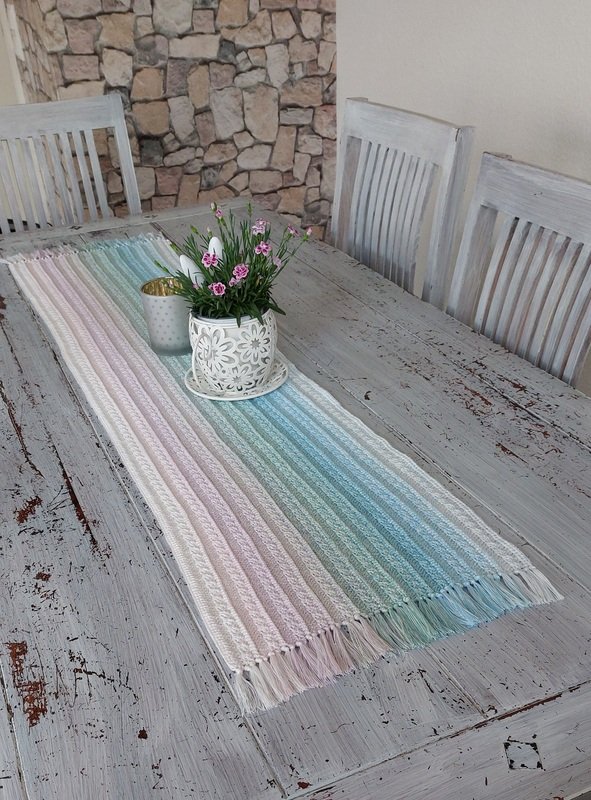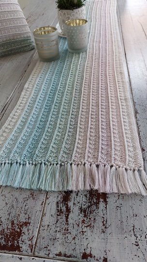 Tischläufer (Testerin): 1200m/ 4-fädig, NS 3,5. Größe: 145cm x 31cm