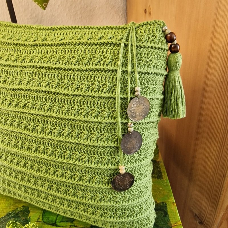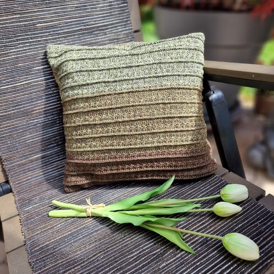 Kissen 1 (35x35cm). grün/brauner Verlauf ca. 750m/ 4-fädig.