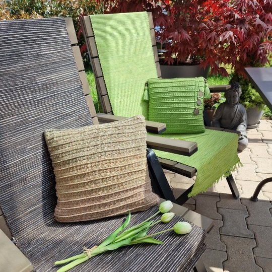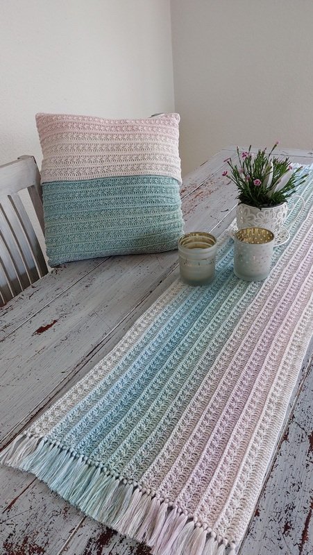 Die Größe der Kissen oder Tischläufer, kannst Du ganz einfach durch Deinen Maschenanschlag selbst bestimmen.
