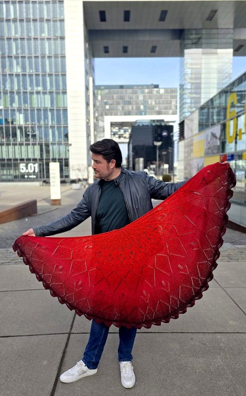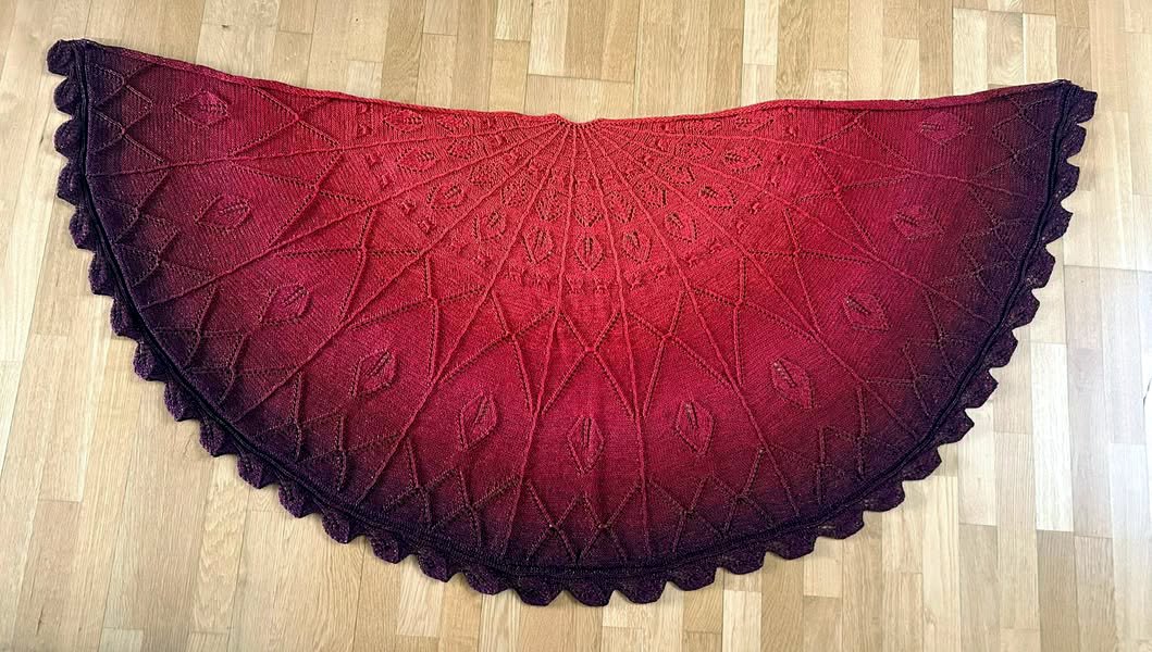 Dieses halbrunde Tuch ist perfekt um es sich über die Schulten zulegen und durch seine Muster sehr abwechslungsreich zu Stricken.