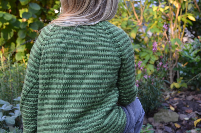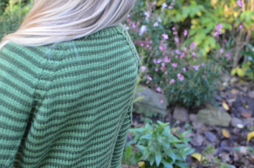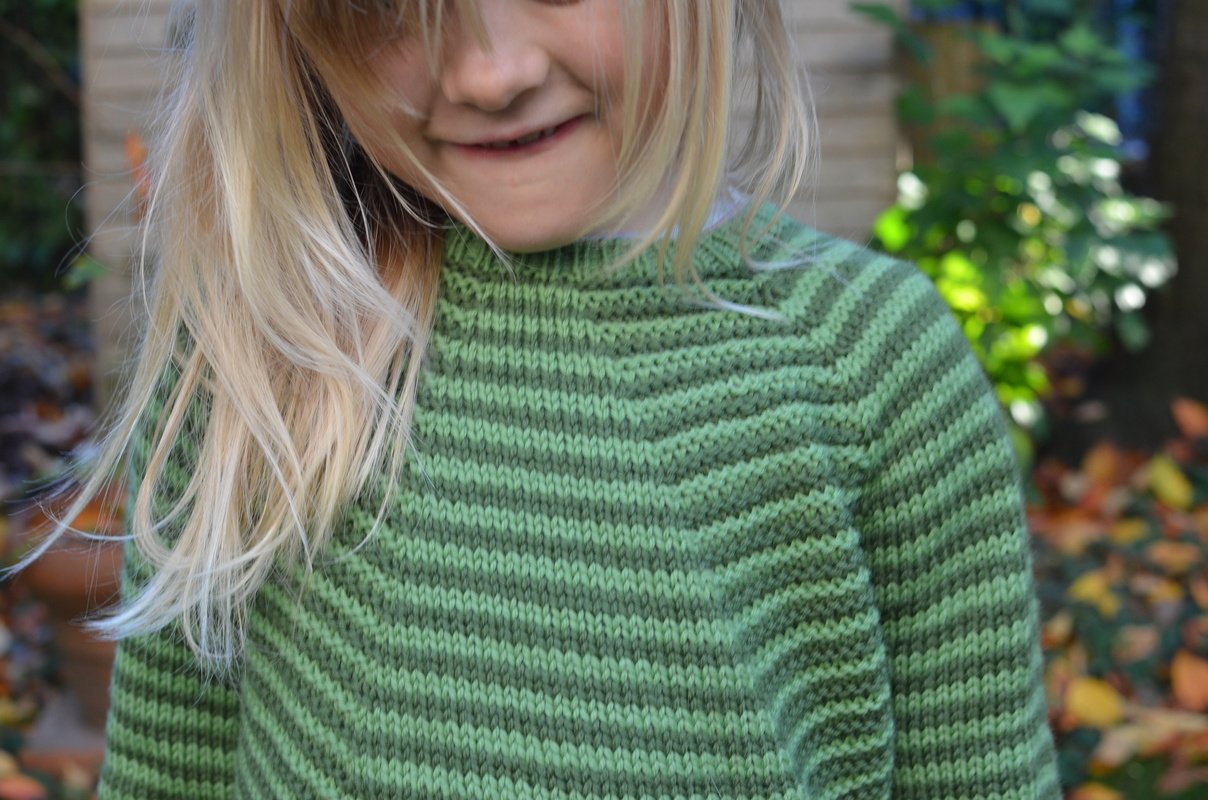 der Pullover wird von oben nach unten in einem Stück gestrickt, Raglankonstruktion