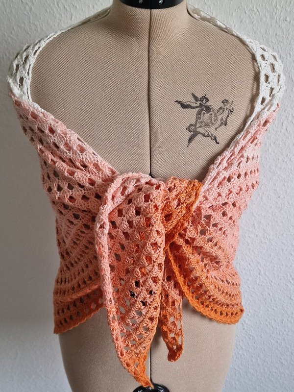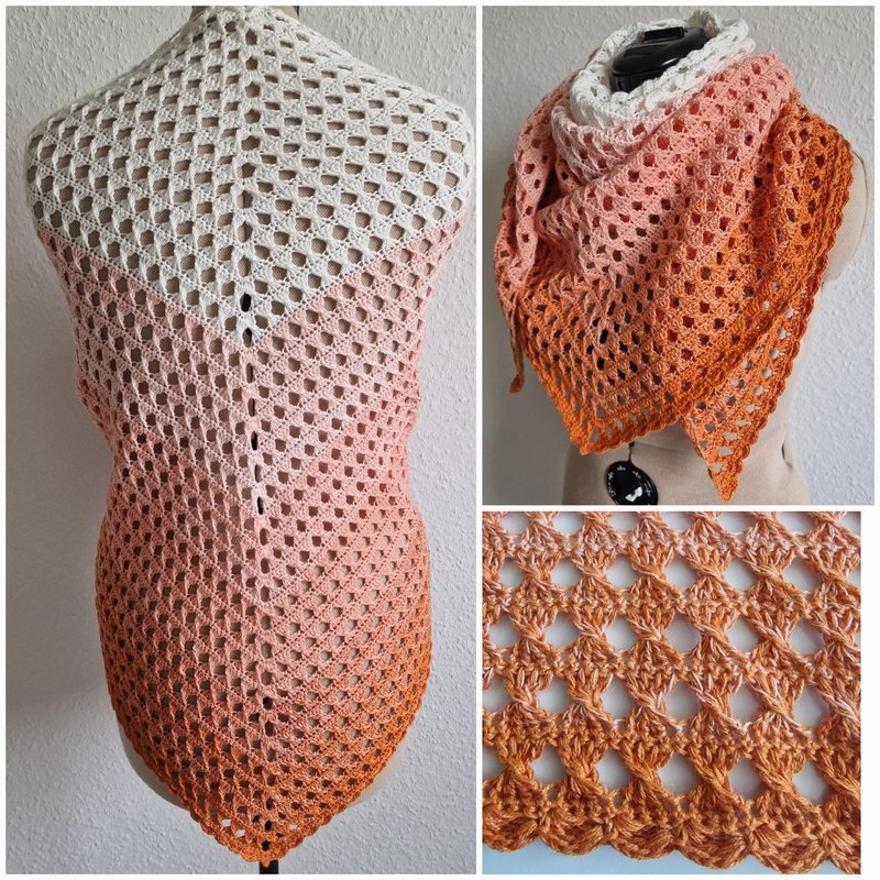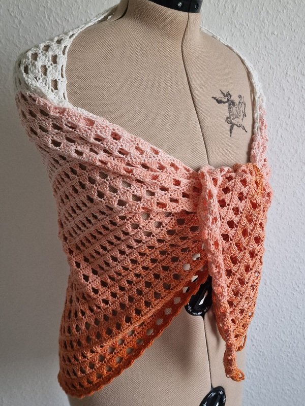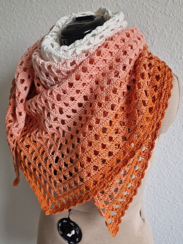 Du kannst dir nach dieser Anleitung ein wunderschönes Dreieckstuch häkeln. Ich habe mein geliebtes Schleifchen – Muster solo und all Over eingesetzt, wodurch dieses Tuch mit einer gewissen Leichtigkeit und einem Hauch von Romantik glänzt.