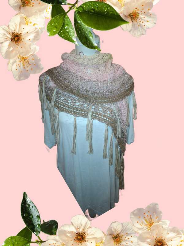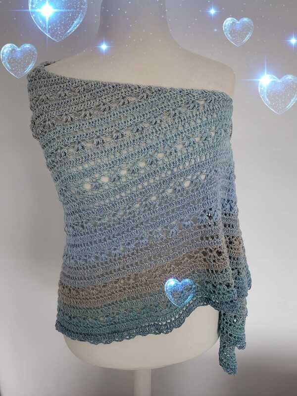 Das Tuch kann in jeder beliebigen Größe gehäkelt werden, auf dem Titelbild sieht man das Tuch in einer Größe von etwa 205cm x 60cm.