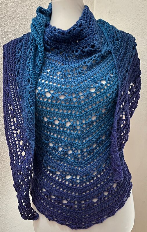 Agave ist ein leichtes, sommerliches Dreieckstuch. Es kann in jeder beliebigen Größe gehäkelt werden, ist anfängerfreundlich und fernsehtauglich.