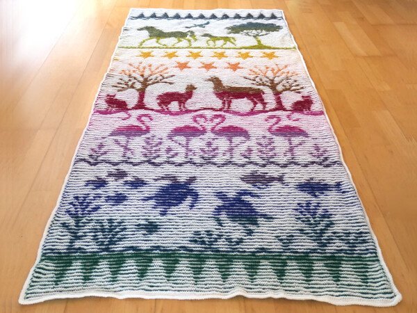Die Decke besteht aus 180 Maschen und 337 Hin- und Rückreihen