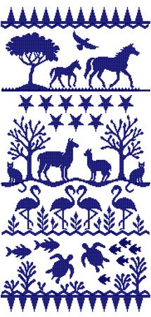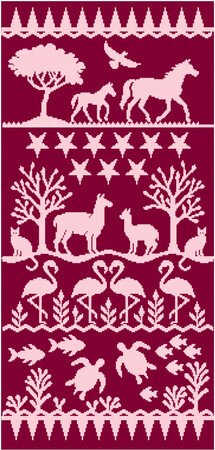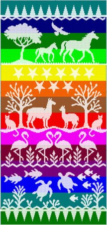 Das Motiv wurde in 14 unterschiedlichen Motivfarben gestrickt, dafür reichen pro Farbe ein Knäuel mit 133m Lauflänge, auch, wenn man sie später noch erweitern möchte.