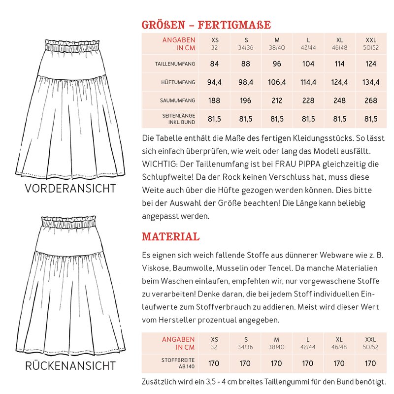 6 Doppelgrößen XS (32) bis XXL (50/52)