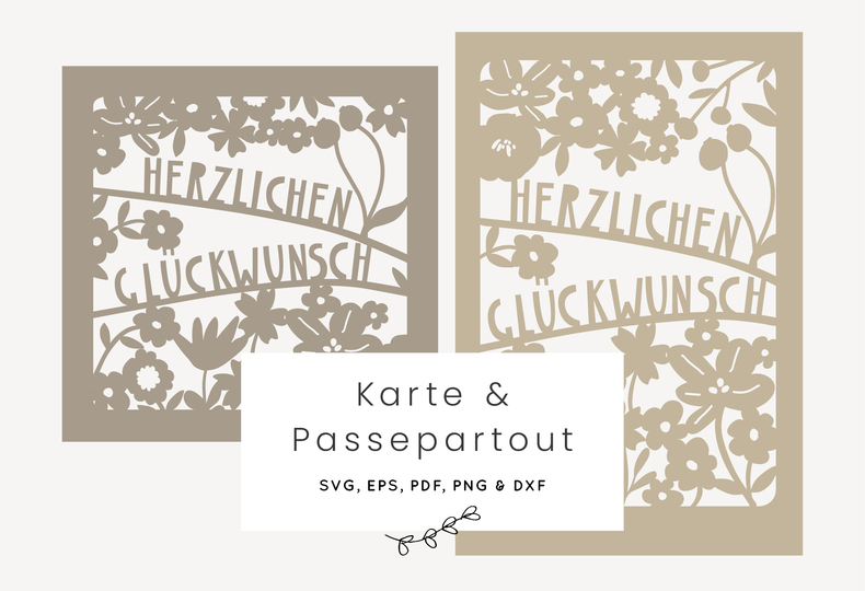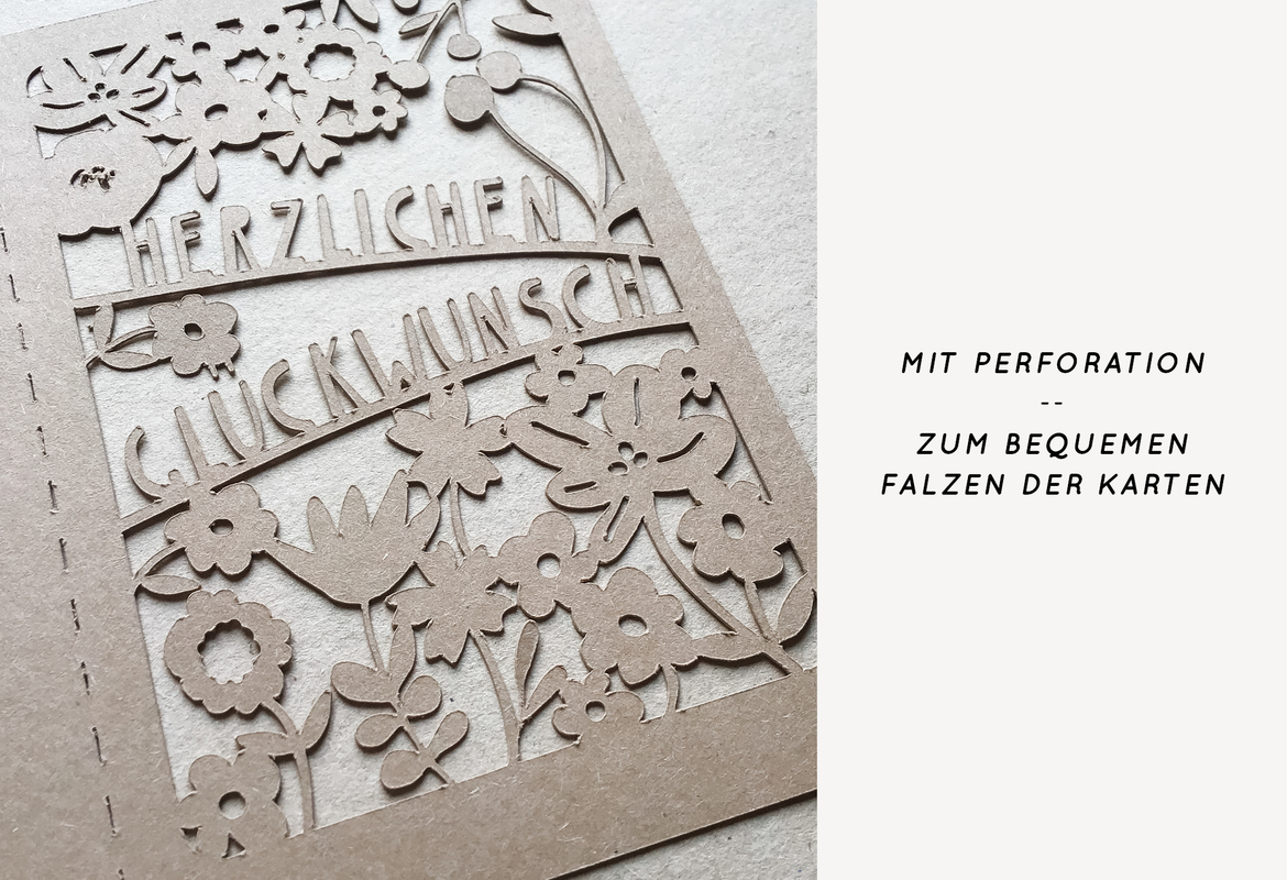 Und wenn du das Motiv lieber als Karte verschenken möchtest, habe ich es dir auch nochmal als Klappkarte (in A6 und als quadratische Vorlage) hinterlegt. Besonders praktisch ist die schon im Template eingebaute Perforation - so weißt du genau, wo du die Karte falzen musst. Ebenfalls enthalten sind Schneidedateien für passende Inlays. Damit kannst du die Grußkarten ergänzen, wenn du möchtest. Damit bleibt gerade für Gruppengeschenke genug Platz für alle zum Unterschreiben und das Scherenschnitt Motiv ist hübsch klar sichtbar.