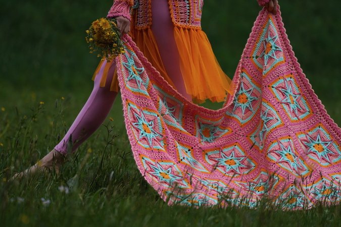 Die Decke ist mit 20 Granny`s = 112cm x 140 cm