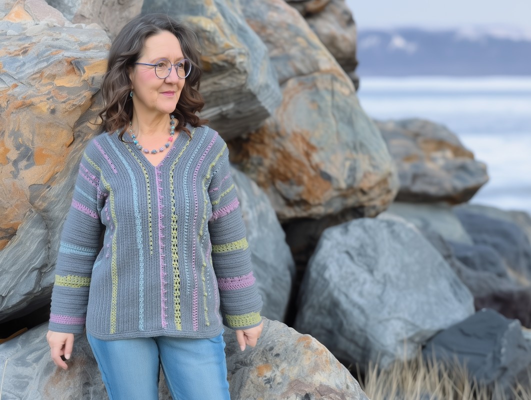 Der Pulli wird wie zwei lange Schals gehäkelt, die anschließend verbunden werden – ganz unkompliziert.