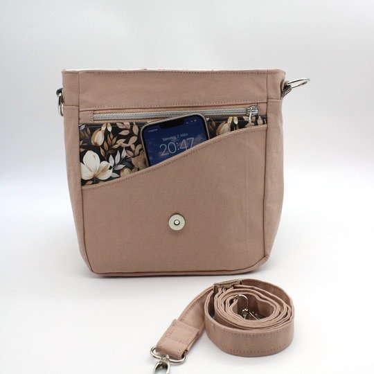 Die Umhängetasche ist eine kleine Schultertasche, welche mit Steckfach und 3 Reißverschlussfächern viele Möglichkeiten bietet. Das Reißverschlussfach auf der Klappe ist ein absoluter Eyecatcher und eignet sich perfekt für die Lieblingsstoffe, die in unseren Schränken auf ein ganz besonderes Nähprojekt warten. Hier können auch wunderbar Stoffreste verwendet werden. Je nach Stoffwahl kann deine Sabrina ganz elegant oder richtig sportlich sein. Und so sogar für unsere Männer oder auch unsere Kids zum ganz persönlichen Begleiter werden.