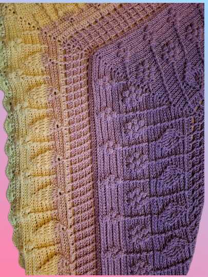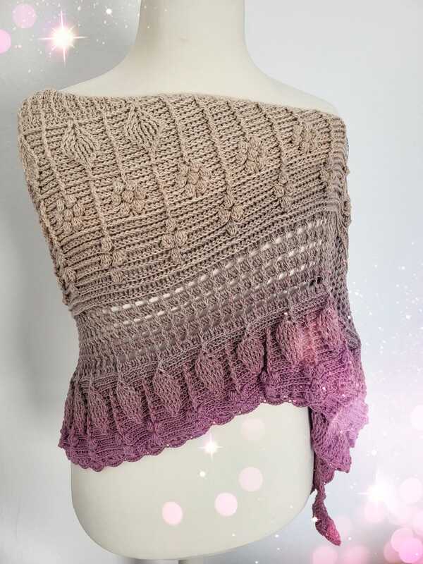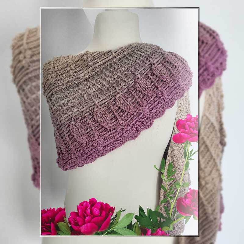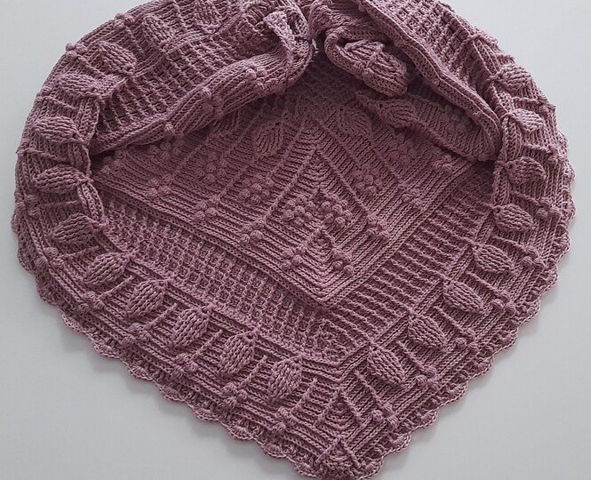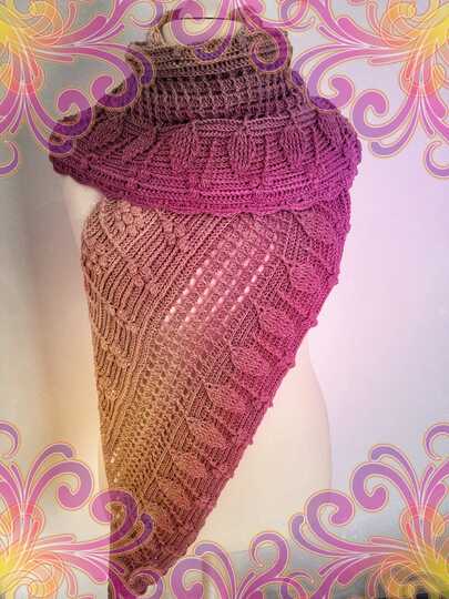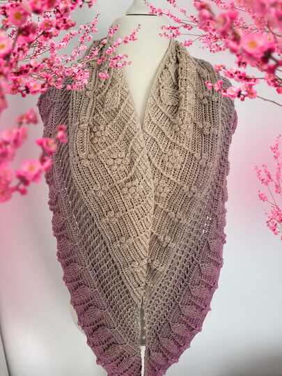 Das Tuch wurde aus einem Bobbel in der Farbe Altrosa, gehäkelt. Der Verbrauch lag bei 1450m, 4-fädig mit Nadelstärke 3,5. Auch hier hängt der Verbrauch stark von der jeweiligen Häkelweise ab.