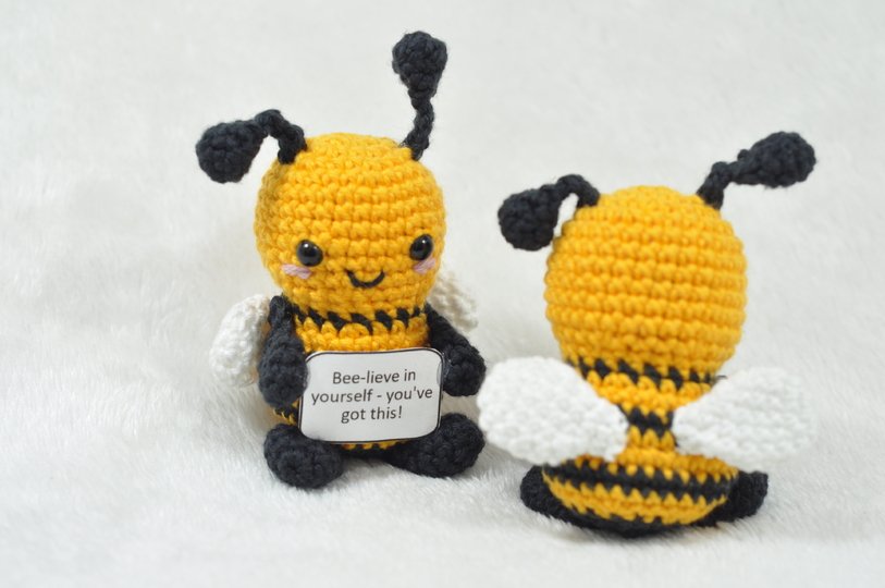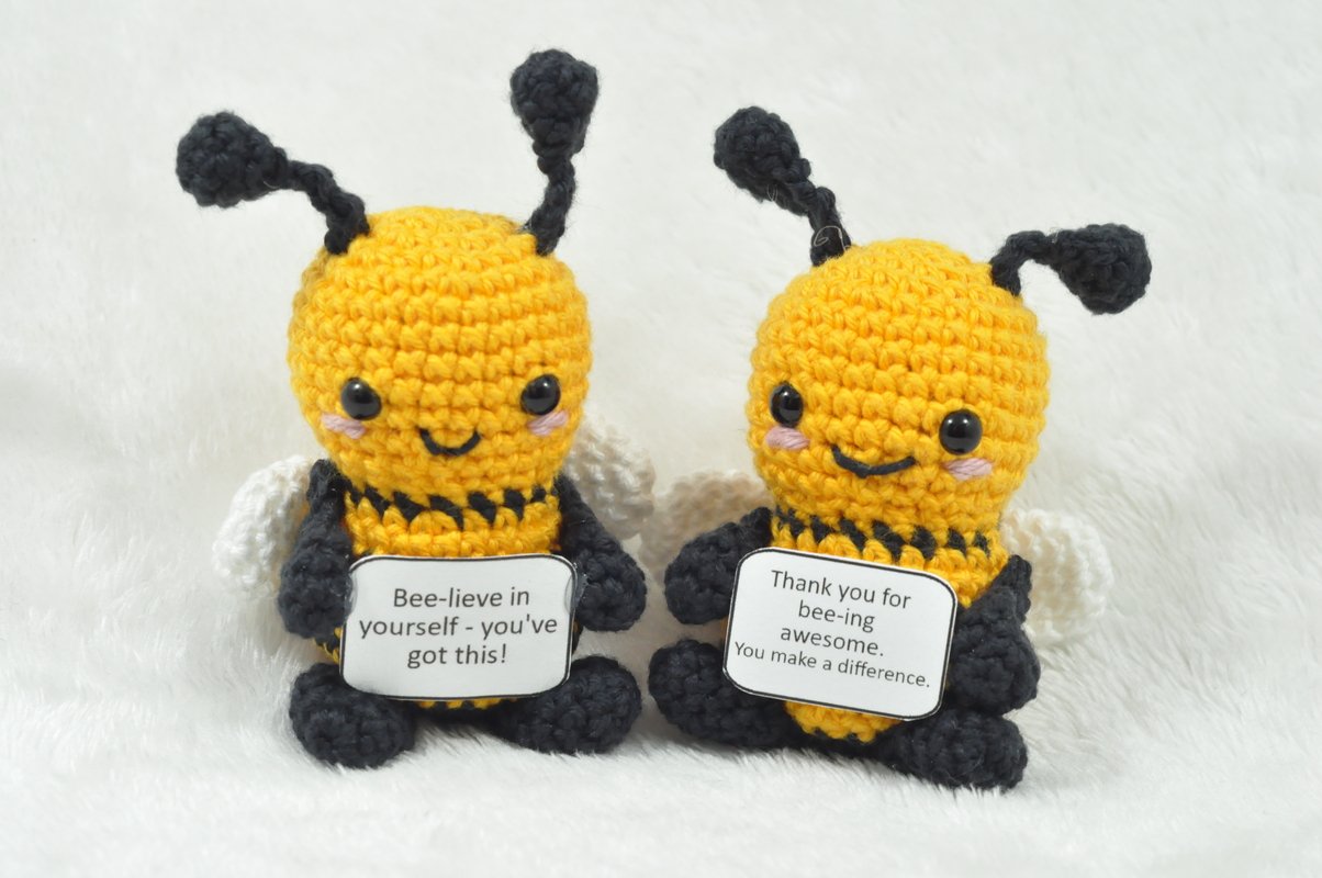 Diese liebevoll gestaltete Häkelanleitung zeigt dir, wie du eine süße Biene mit motivierendem Spruch ganz einfach selbst herstellen kannst – perfekt als kleines Geschenk für besondere Menschen.
