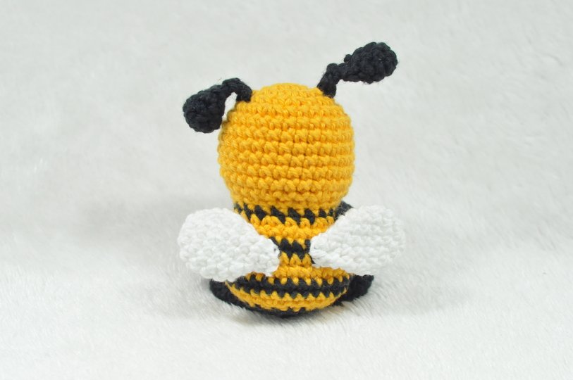 Die Biene ist etwa 8 cm hoch und 5 cm breit.