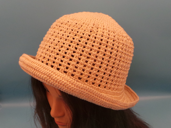 Baumwollgarn 50g/125m, ca. 96g, Häkelnadel 3,25 mm, Kopfumfang 55 cm.