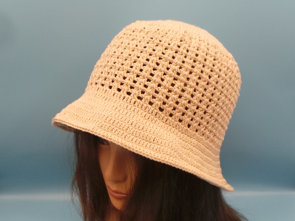 Baumwollgarn 50g/125m, 1 Knäuel beige, Häkelnadel 3,0 mm, Kopfumfang 39 cm.