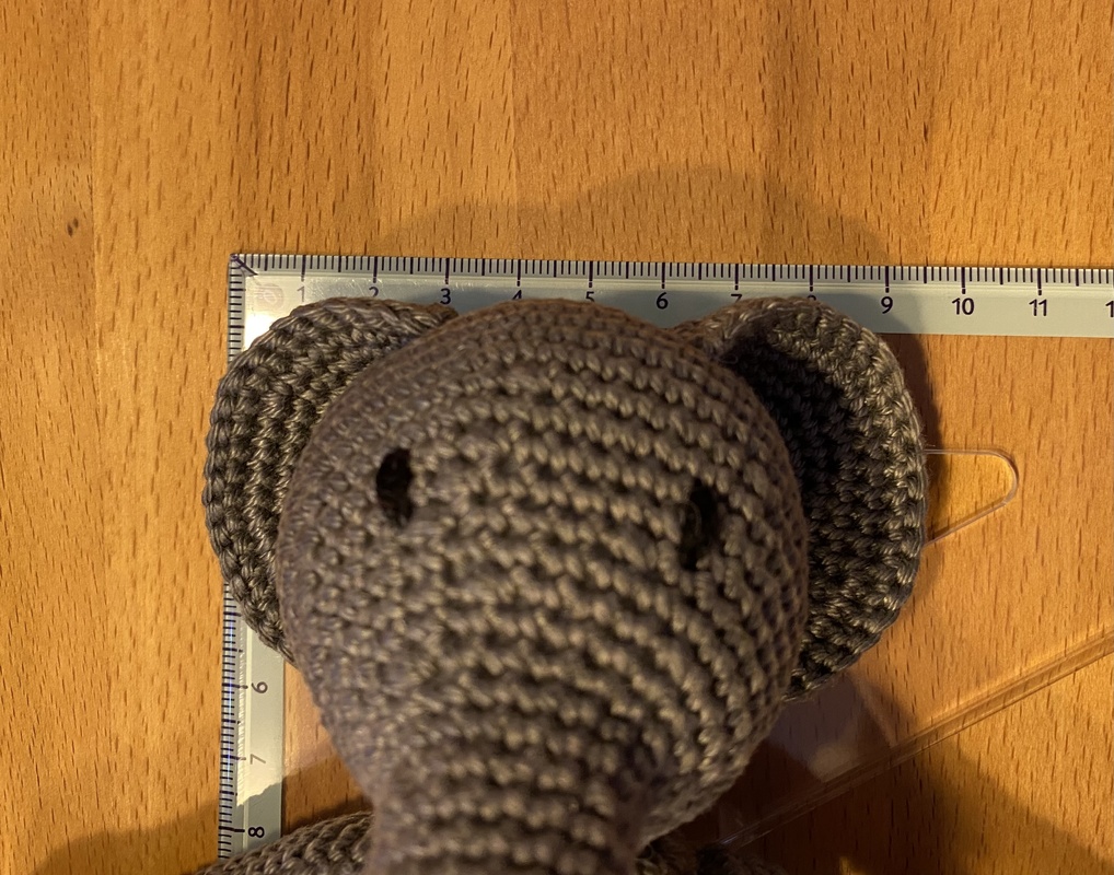 Bei mir wurde der Elefant ca. 27 cm (sitzend ca. 18 cm)