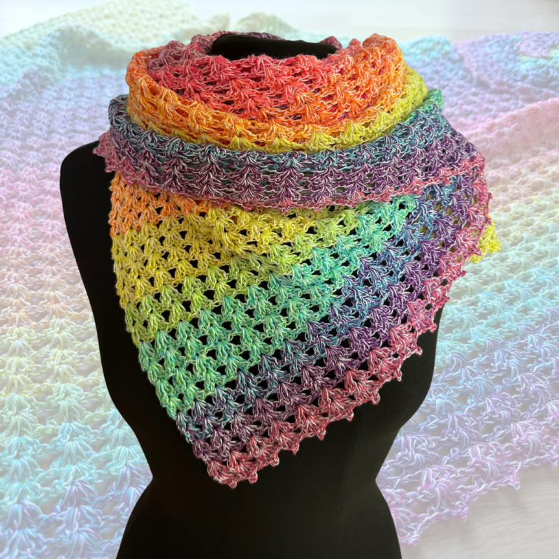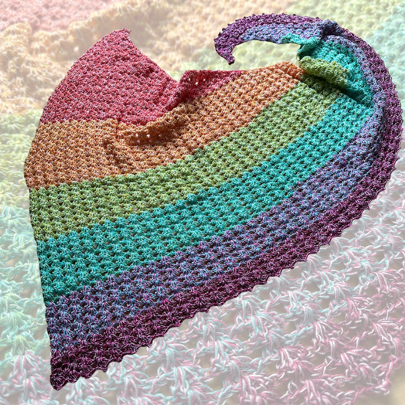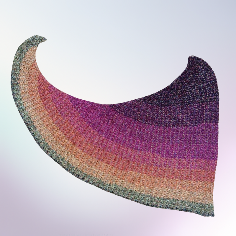 Das Tuch hat eine asymmetrische Form, die ganz einfach zu häkeln ist und auch von ambitionierten Anfängern bewältigt werden kann. Das gleichmäßige Muster ist sehr eingängig und sorgt für eine entspannte Häkelei.