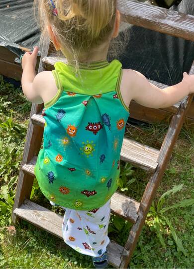 Das Top Kira ist ein luftiges Mädchen-Top mit stylischem Racerback und eleganter Kellerfalte im Rücken. Der Schnitt bietet zwei Passformen – slimfit für schmale Kinder und normal für alle Kids – und sorgt für einen perfekten Sitz. Dank der ausführlichen Anleitung ist Kira schnell und einfach genäht. Ideal für den Sommer und perfekt kombinierbar mit Shorts, Radlerhosen oder Leggings!