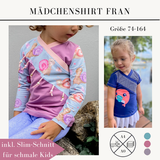 Du liebst es, deine Nähprojekte mit kleinen Details zu veredeln? Dann ist das Mädchenshirt Fran genau das Richtige für dich! Mit seiner einzigartigen Teilung und der clever integrierten, optionalen Brusttasche, die sich in der Überlappung versteckt, kannst du ein echtes Unikat kreieren. Wähle zwischen kurzen oder langen Ärmeln und passe das Shirt perfekt an jede Jahreszeit an. Dank der zwei Passformen slimfit & normal sitzt Fran immer optimal.