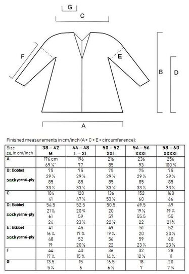 Der Materialverbrauch in Klammern zeigt Garnmenge und Lauflänge für die einzelnen Größen in Klammern.