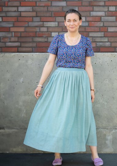 Stoffempfehlung: Ida Ida wird aus Jersey genäht, besonders gut eigen sich etwas griffigere, aber weich fallende Baumwolljerseys. Sehr leichte Stoffe, wie z.B. Viskosejersey eignen sich eher nicht so gut.
