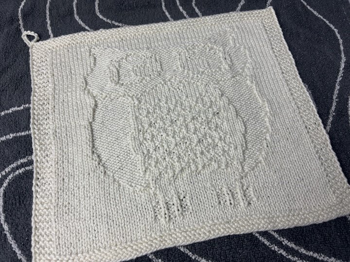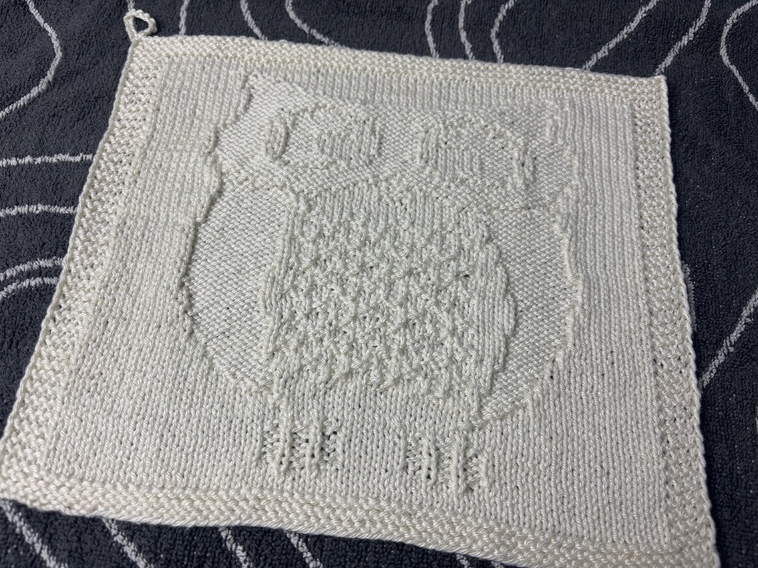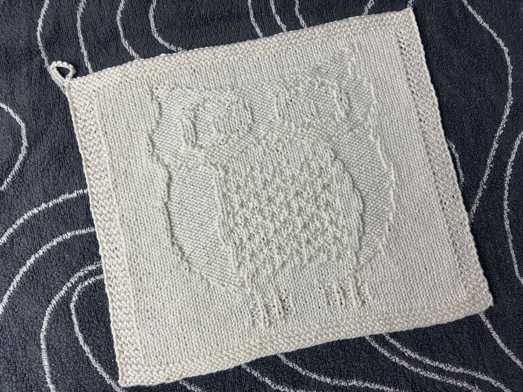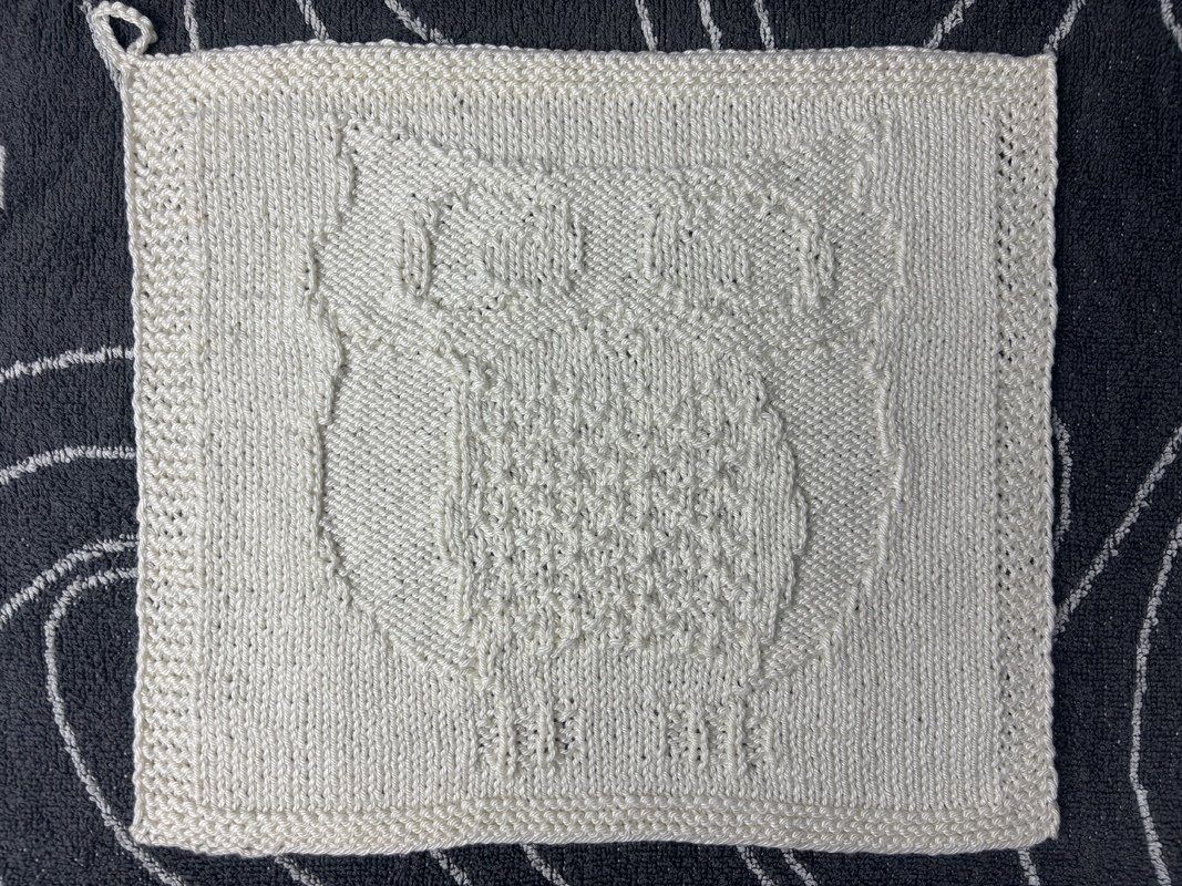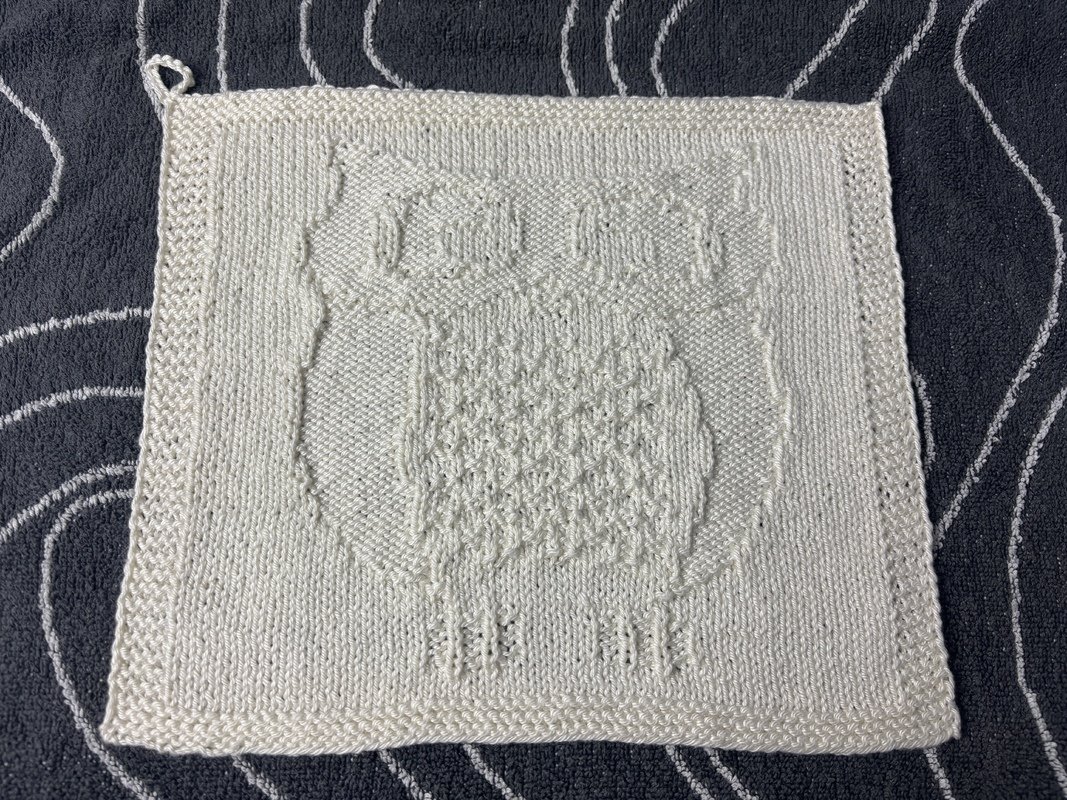 Eule Eugen gibt es auch als zweifarbiges Muster (Double Face) auf einem Topflappen. Die Anleitung dazu findest Du hier: https://www.crazypatterns.net/de/items/111131/topflappen-eule-eugen-eine-double-face-strickanleitung.
