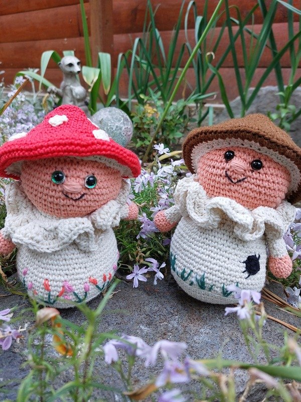 Der fertige Pilz wird je nach Wollart und Nadelgröße unterschiedlich groß. In meiner Anleitung mit Nadelstärke 2-2,5 und der entsprechenden Wollart wird der fertige Glückspilz ca. 18 cm hoch.