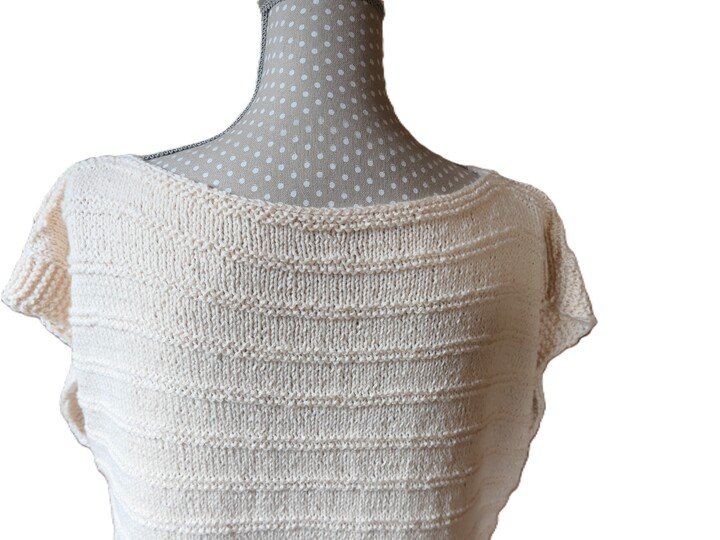 Garn: Friends Cotton Silk Col. 03 Oatmilk (Hafermilch) von Hobbii 50 g mit einer Lauflänge von 120m gestrickt mit Rundnadel Nr. 4, schönes weiches Garn