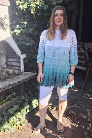 Pitufina lässt sich ganz mühelos an alle Größe und Längen anpassen, für den Sommer kann sie luftig leicht und ohne Ärmel gearbeitet werden, für den Winter mit Ärmeln und wärmendem Garn.