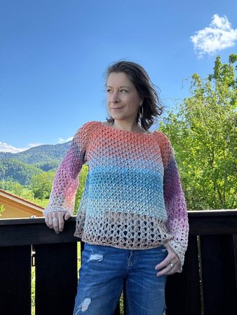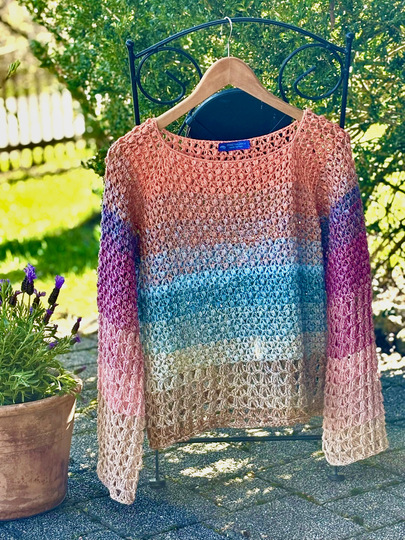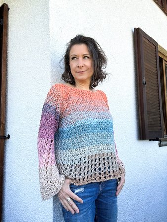 Dann ist dieser luftig-leichte Raglanpullover genau dein nächstes Herzensprojekt! Von oben nach unten gehäkelt mit traumhaften Farbverlaufsbobbeln, zwei entspannten Mustern und einem Hauch Boho-Vibe – perfekt, falls Du fortgeschrittener Anfänger, geübte Häkler:in oder gar Profi bist. Meditativ zu Häkeln, modern und vielseitig tragbar. Für einen klassischen Look kannst Du diesen Pullover natürlich auch einfärbig häkeln. Körper und Ärmel lassen sich übrigens problemlos verlängern oder verkürzen. Starte jetzt dein neues Lieblingsstück!
