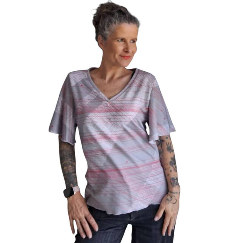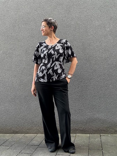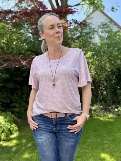 Das Shirt eignet sich besonders gut für einen fließenden Viskosejersey, der den Fall schön unterstützt und für ein angenehmes Tragegefühl sorgt. Viel Spaß beim Nähen und Tragen!