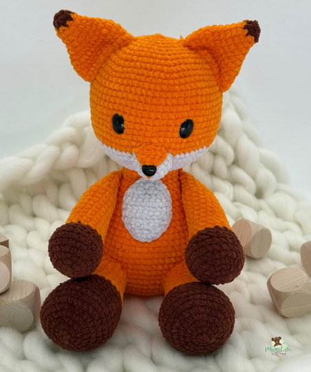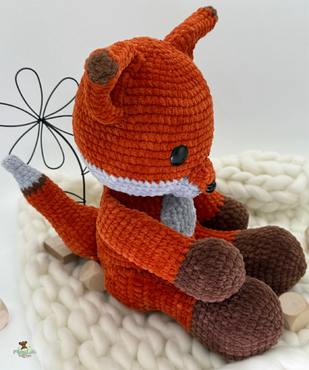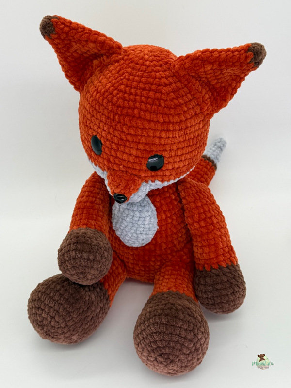 Die Anleitung ist zum Original an einigen Stellen, was Maschen– und Rundenzahl angeht, angepasst—damit das Ergebnis ebenso schön wird und die Proportionen des Fuchses zueinander passen.