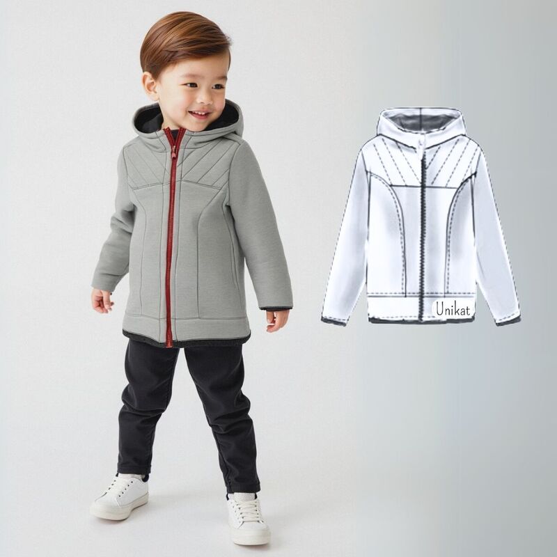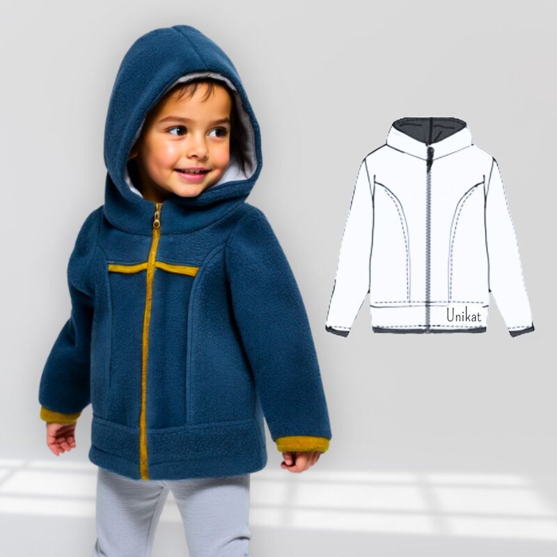 Mit diesem Schnittmuster nähst Du eine coole Jacke für Dein Kind für die Übergangszeit. Die Jacke ist unisex und ist sowohl für Jungs als auch Mädchen geeignet.