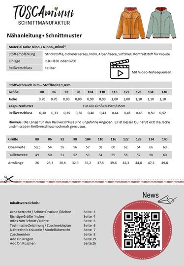 Schnittmuster Kinder Jacke Nino + Ninon: