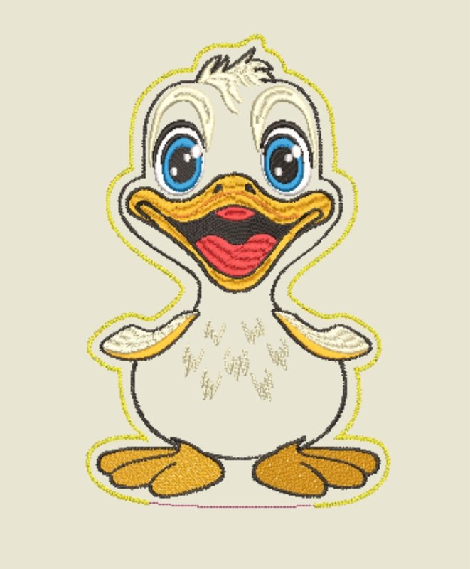 Stickdatei ITH Ente Duggy für Rahmen 20x30 cm, Maschinenstickdatei