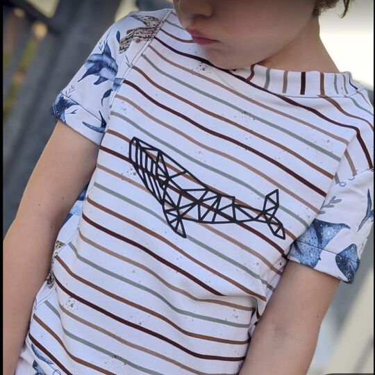 Für das Shirt kannst Du wunderbar Paneelstoffe verwenden und Deine Stoffreste zu Paspeln verarbeiten, die als zusätzlicher Hingucker dienen.