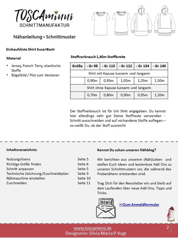 Stoffempfehlung: dehnbare Stoffe, Jersey, French Terry, Sweat, Nicki