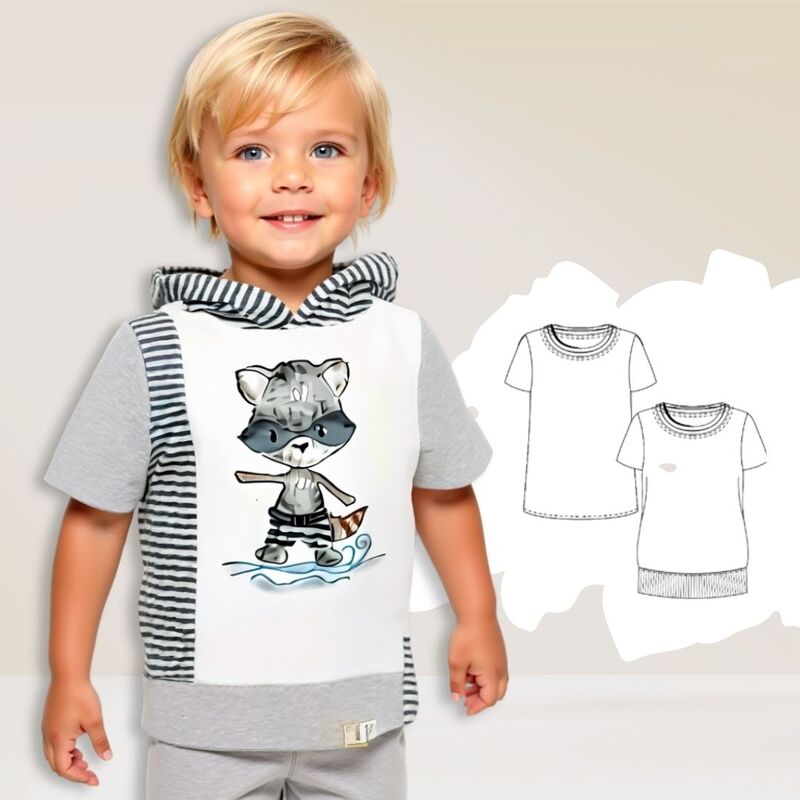 Schnittmuster Kindershirt / Hoodie Susa+Basti Gr. 80-140 - Kinderhoodie mit Patchworkoptik - perfekt zur Stoffresteverwertung.