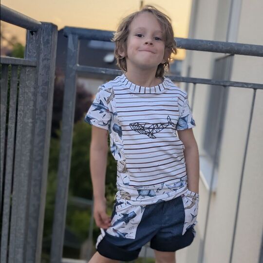 Mit dem Schnittmuster Susa + Basti nähst Du ein süßes Shirt für Mädchen und Jungs mit coolen Teilungsnähten.
